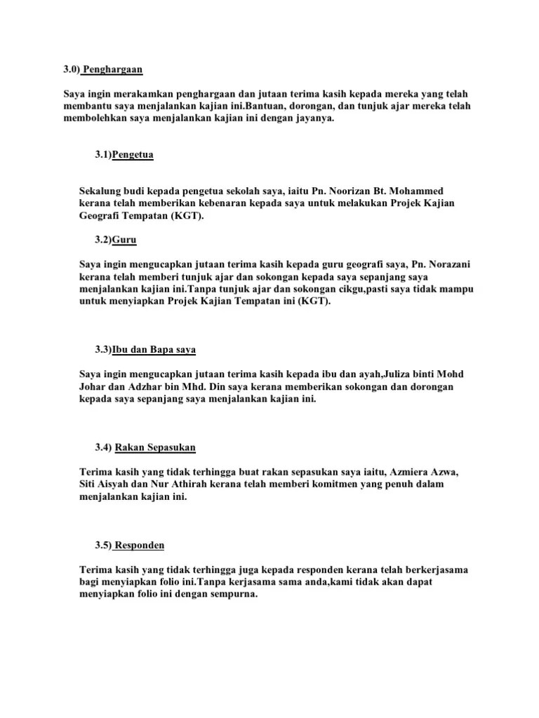 Perkara tajuk kajian senarai kandungan penghargaan pendahuluan objektif kajian . 4 penghargaan saya bersyukur kerana dapat menyiapkan tugasan kerja lapangan geografi tingkatan 2. Contoh penulisan laporan kerja lapangan pendahuluan saya. Penghargaan kerja kursus geografi nama calon :